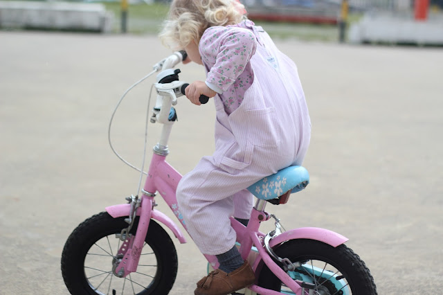Aproveitámos o primeiro dia de Primavera para ver as (não) evoluções da Caetana na bicicleta.