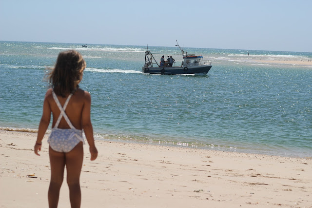 Voltámos à Fuzeta e à praia da Barra Nova, uma das mais bonitas (para mim) desta região. Ali o vento quando aparece é quente, dali conseguimos ver chegar os barcos da pesca carregados de peixe e marisco. Foi lá que fiz SUP rodeada de paz e sossego, onde o único barulho que se ouve são as gaivotas ou algum barco que passa a abrir para ir levar e buscar pessoas. Ali brincaram, nadaram e andaram à caça de caranguejos, em mais um dia quente de Verão.