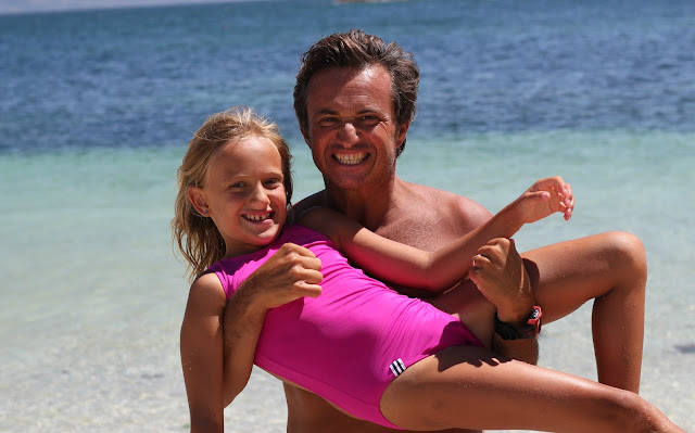 A areia é branca e cheia de conchas o que fez ter as 3 entretidas durante bastante tempo. Os peixinhos que vêm nadar junto de nós fizeram as delícias dos banhos (mesmo com água fria os mergulhos foram muitos).