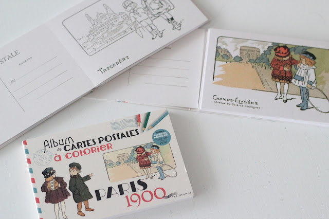 De uma livraria de Monmartre, um livro cheio de postais para cada uma. Muitos dos postais são para pintarem e enviarem este Natal às pessoas mais importantes que elas irão escolher.