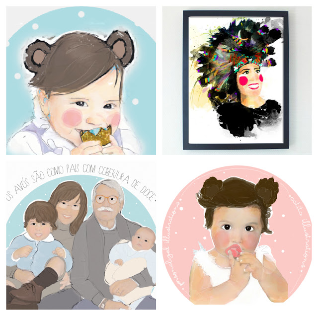 Catita Illustrations quando navegava pelo Pinterest e fiquei apaixonada pelo seu trabalho. Acho o máximo os quadros dela e são presentes tão giros e originais. Podem ser dos filhos, da família ou mesmo de nós próprias...quem ficou com desejos de ter um assim?