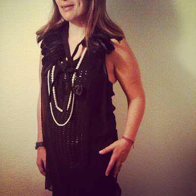 um top preto que adoro (faz de vestido curto, mas para isso tenho de emagrecer mais um bocadinho) de uma loja que fechou nas Amoreiras, penas pretas da