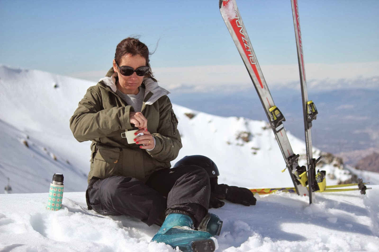 Os skis que usou, fizeram os olhos dela brilhar, quer pela cor, quer por serem de princesa, mas principalmente, porque achou que eram especiais, ao colarem uma etiqueta com o seu nome.