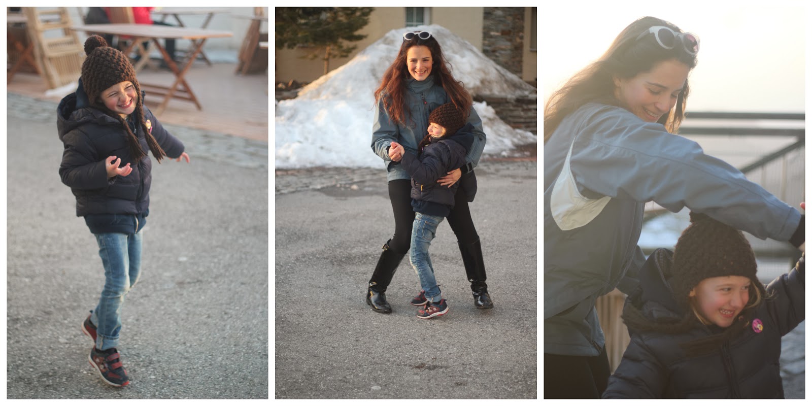 Sempre que vamos para fora com as Cs., as primeiras malas a serem feitas são as delas. Faço uma lista das coisas fundamentais, as que não podem mesmo ficar de fora, as que gosto mais e duas ou três peças extra, não vá serem precisas ou serem aquelas que naquele dia, naquela hora apetecia mesmo que elas vestissem. Quando vamos para a neve, já sabemos que os kits vão ter de ser pensados a dobrar, porque a roupa do dia, é diferente da roupa do final de tarde e noite. Ao contrário de cá, todas as casas são aquecidas e se ficarem num hotel, que foi o nosso caso, a temperatura é tão alta, que mesmo de t-shirt, temos calor.