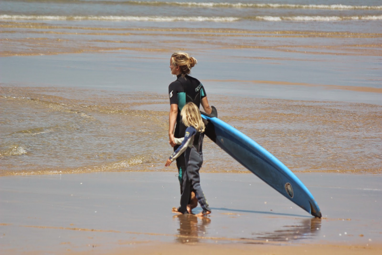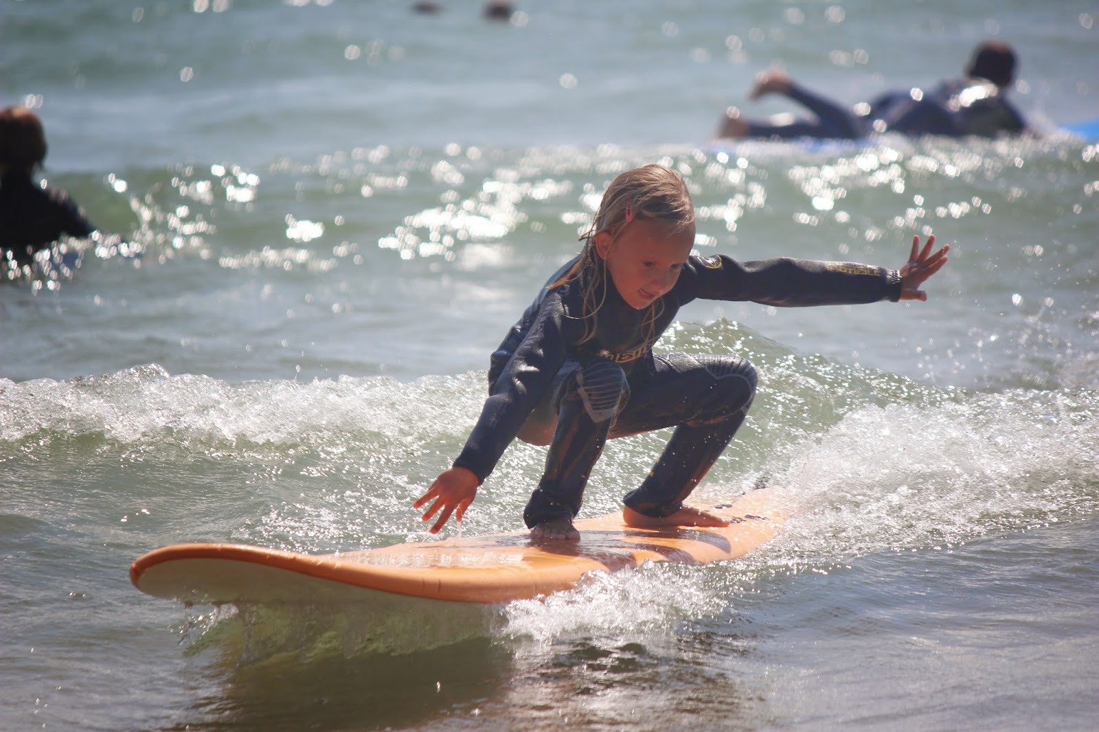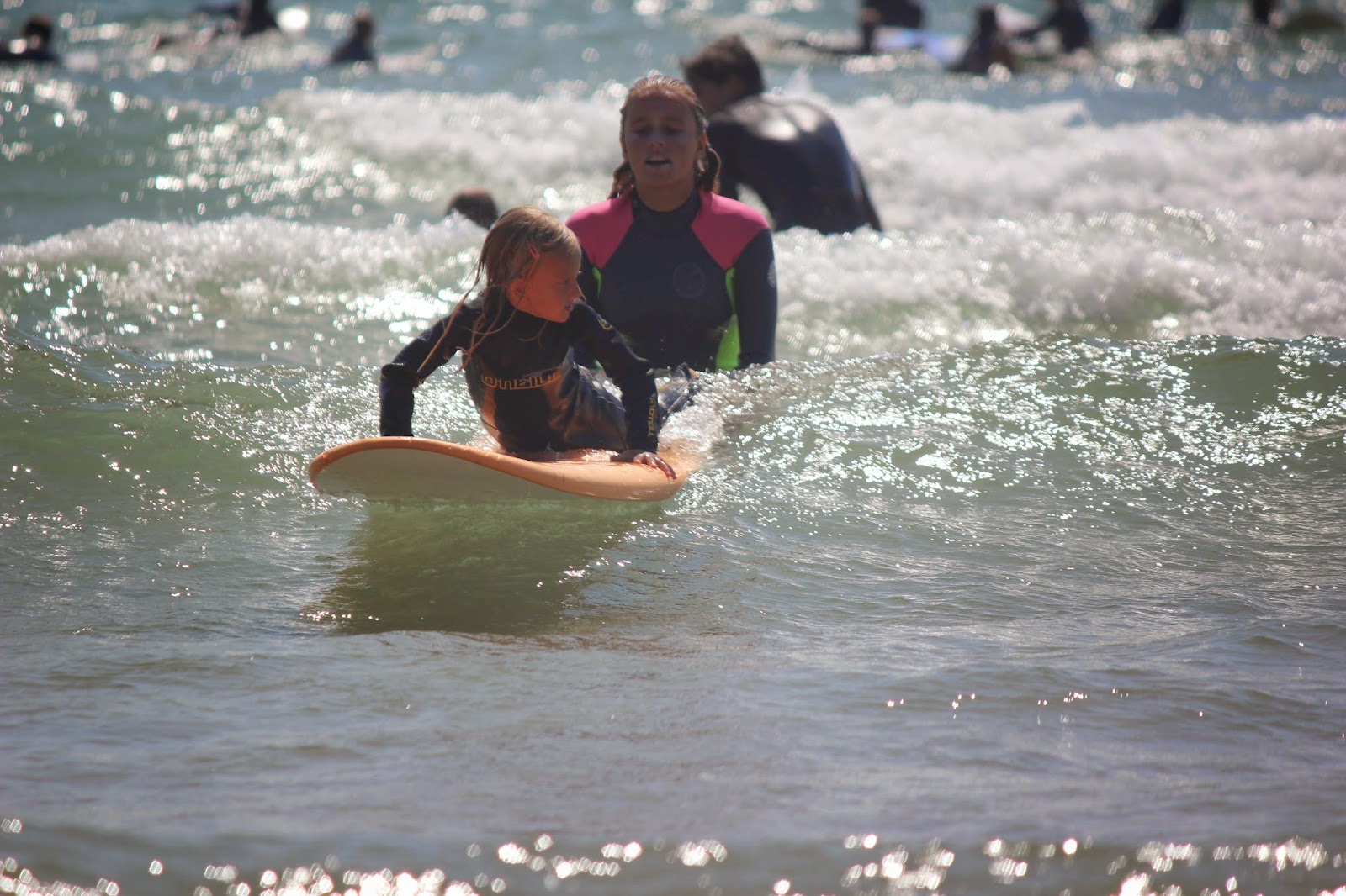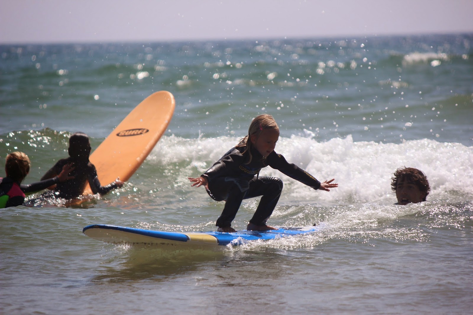Sempre ouvimos os amigos dizer que pinta de surfista ela já tinha, pela cor do cabelo loiro muito branco que faz lembrar as surfistas australianas. Mas agora poderem dizer que é uma surfista, porque já sabe fazer surf, até ela já começa a achar graça.