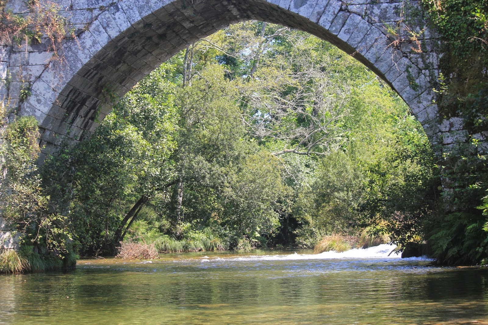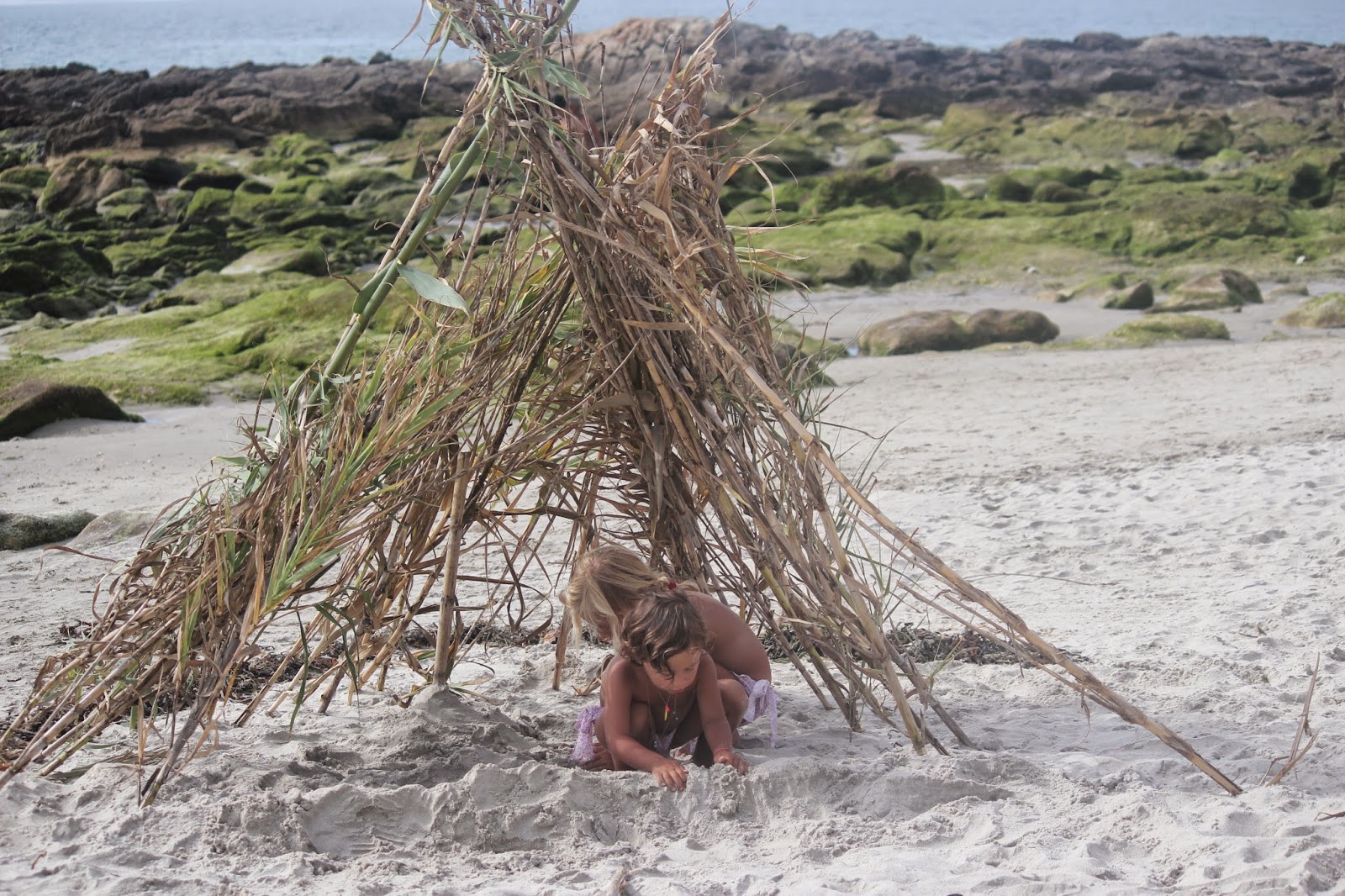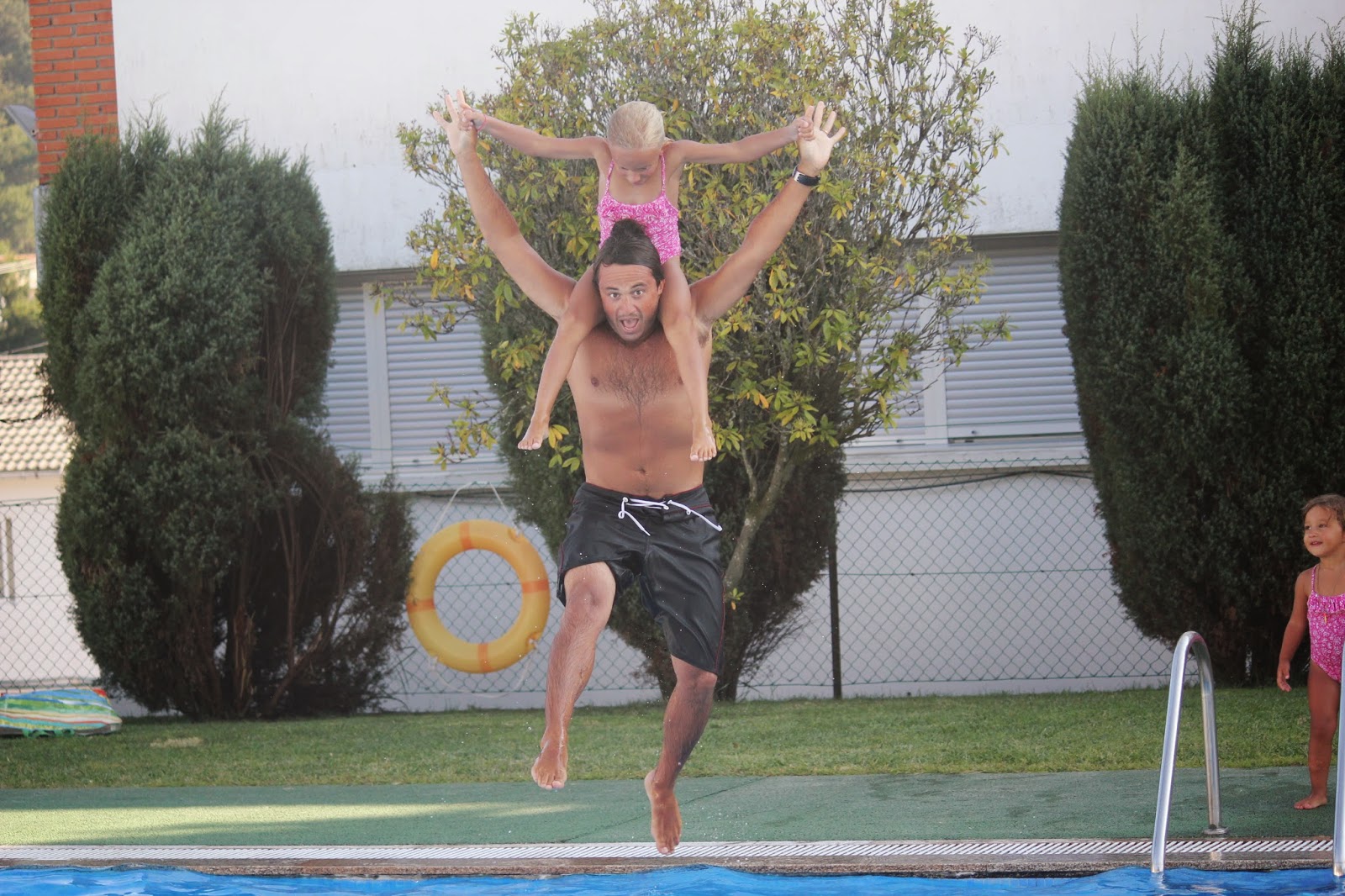 Explorámos e descobrimos sítios novos que a avó I e a tia S. nos mostraram, sítios que não podem ser mais bonitos, mais relaxantes e calmos. Nadar no rio, perto de cascatas e pontes antigas, brincar em praias selvagens, cheias de canas e folhas para fazer cabanas e tendas de índios, chegar ao destino por caminhos difíceis mas que depois nos enchem os olhos e os fazem brilhar de tanta beleza, são os nossos dias aqui. São sítios e lugares mágicos que tornam estes dias de férias em Espanha, de sonho, assim como poderem estar com os bis, com os avós, a tia e hoje com o resto da família para um casamento muito especial. Férias em família é isto. Muita confusão, numa casa cheia, onde todos falam ao mesmo tempo, onde se ouvem gargalhadas, ouvem gritos e se percebe o amor que há entre todos.