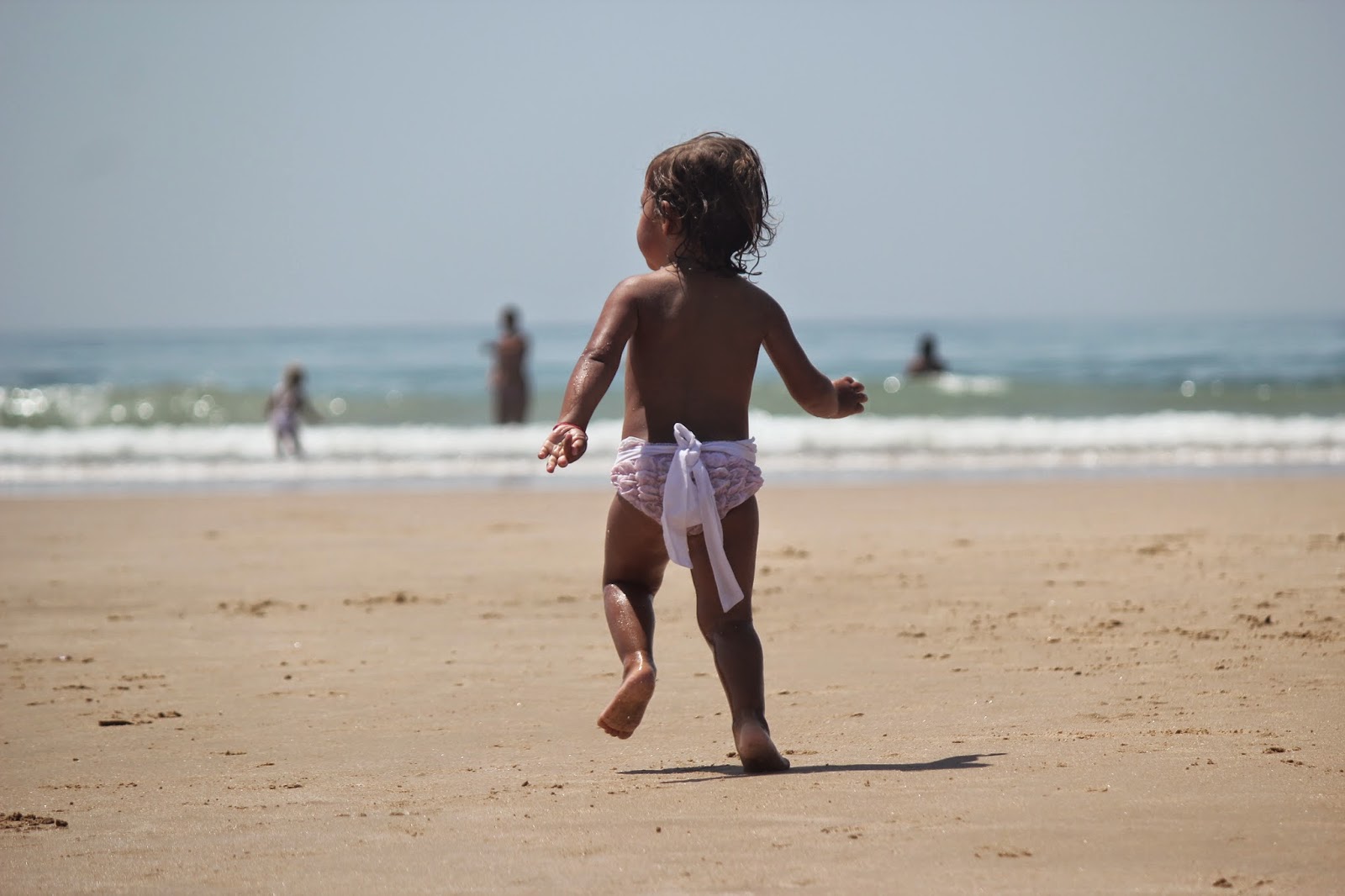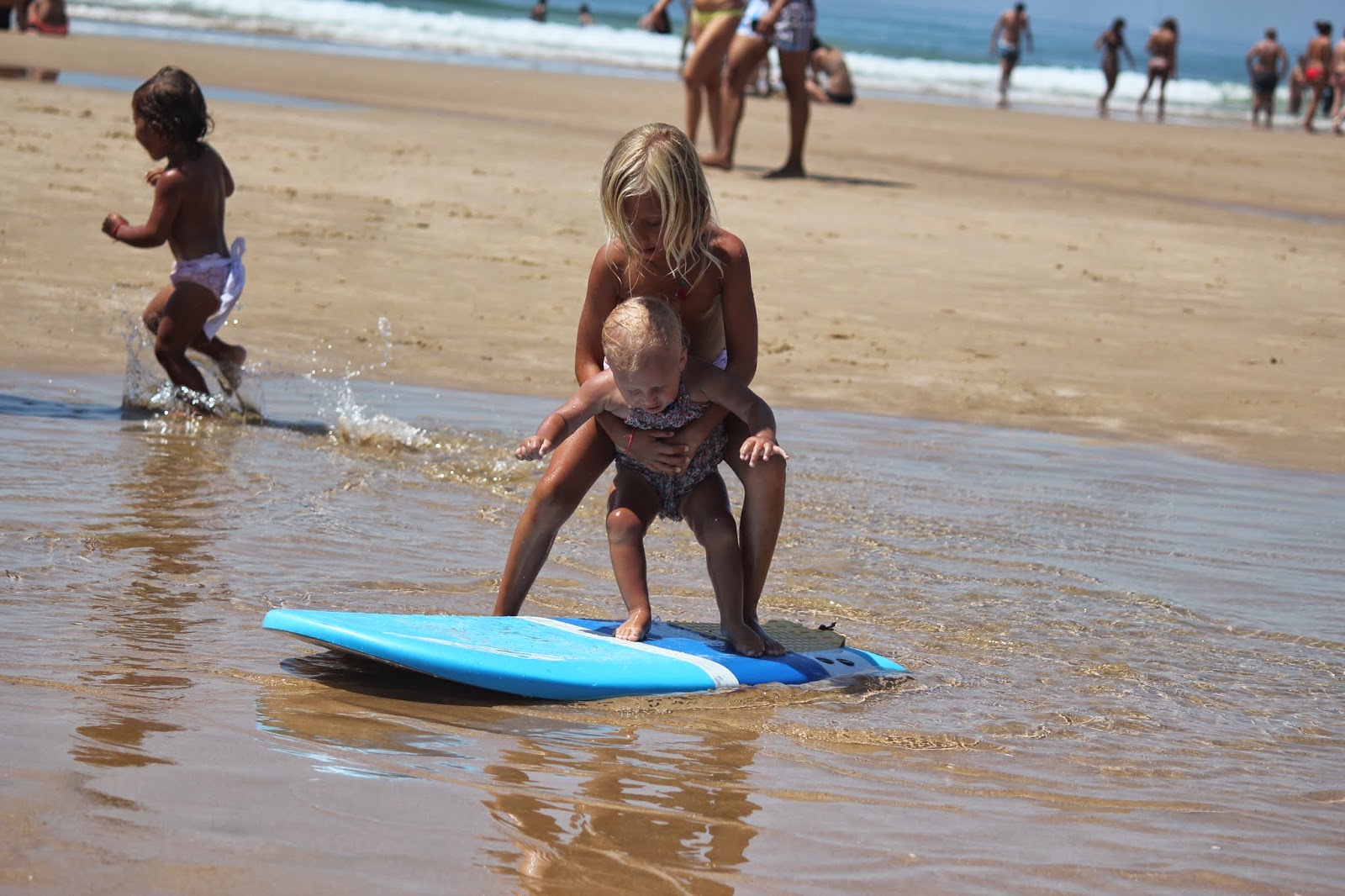 Passamos a maior parte do tempo a fazer o que mais gostamos, acordamos cedo, tomamos pequenos almoços deliciosos, e lá vamos nós aproveitar o melhor do dia, a manhã na praia. As miúdas adoram, passam os dias a chapinhar na água, a brincar nas poças, a nadar, a fazer surf ( a C. grande anda tão viciada, que parece o pai, mal chega à praia quer vestir o fato e vai apanhar ondas. Gosta tanto que tem tentado ensinar as irmãs, nem a mini C. escapa às aulas), brincam aos piratas, aos barcos e até "tesouros" temos conseguido encontrar para muitas ideias que tenho guardadas aqui.