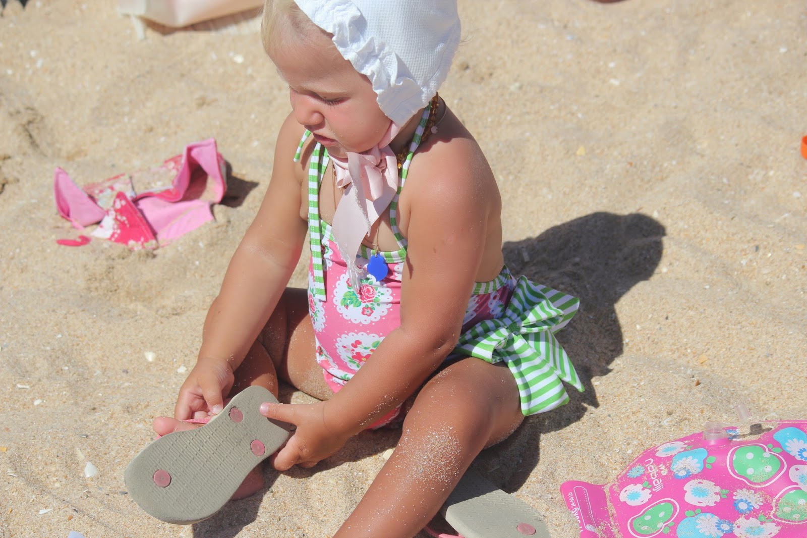 ResponderEliminarOLá, usam, usam, até tenho vários os de pano (uso os do Peixinho do Mar com um tecido bem forte) ou uns de palha que lhes tapam inclusive um bocado da cara tb. A maior parte das fotografias é tirada logo de manhã ou mais ao final do dia (por ser quando a luz é melhor) e a essa hora não sou tão rigorosa. A touca é a unica coisa que a Caetana não tira da cabeça, se tentar pôr chapeus tira. Outra coisa que tenho cuidado e ando sempre a fazer é molhar a cabeça delas, se bem que são uns peixes e andam sempre dentro de água. A Caetana, como é pequenina e é uma das razões de eu levar o carrinho para a praia, fica muito tempo à sombra nele :)