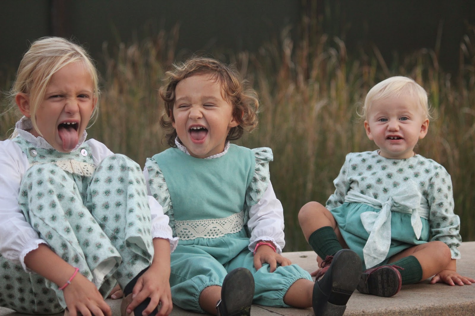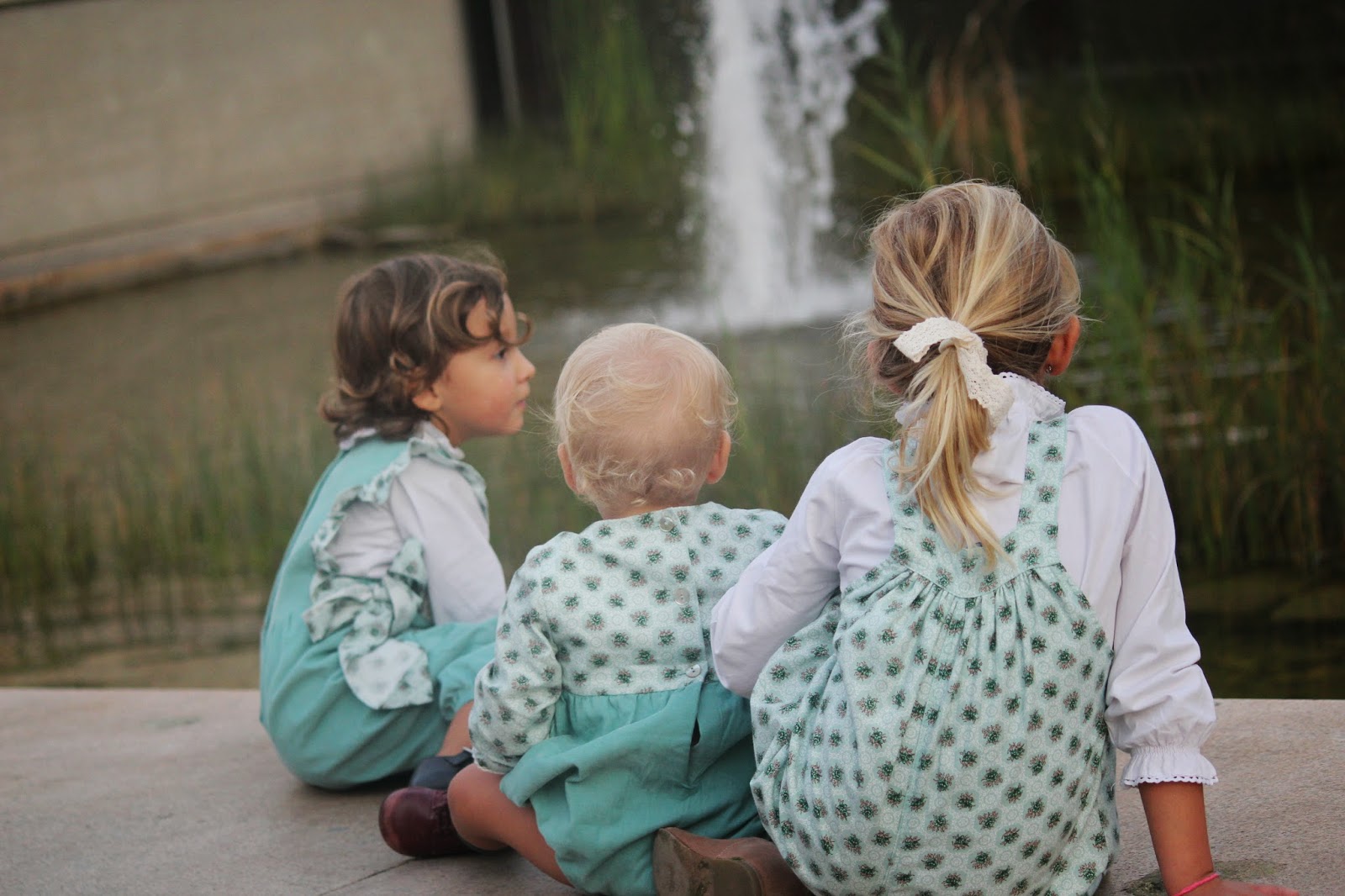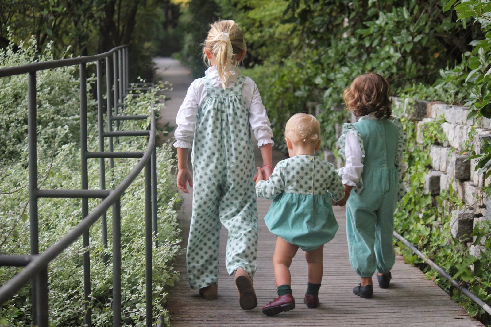 Um jardim que combinou com um dos conjuntos mais giros das novas colecções. Apaixonada pela cor, pelos modelos diferentes para as três e pelo ar amoroso que ficaram com os macacos e fofo da Little Angels. A combinação dos tecidos, da renda e dos laços ficaram apetitosos e são o kit ideal para ser usado em festas, combinados com umas camisolas de golas grandes, ou para correrem e brincarem se usarem com umas camisas brancas básicas simples e giras (como hoje) ou umas longslives sem golas, de uma cor que realce ainda mais a cor aqua que é uma das minhas preferidas (como já deu para reparar). É por esta versatilidade que gosto tanto das peças desta marca.