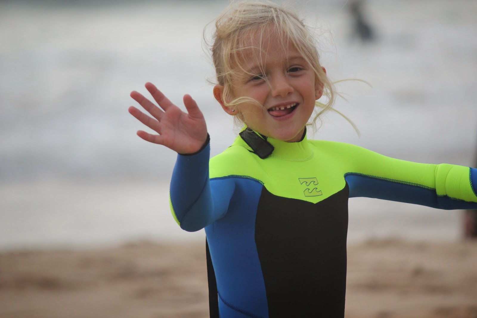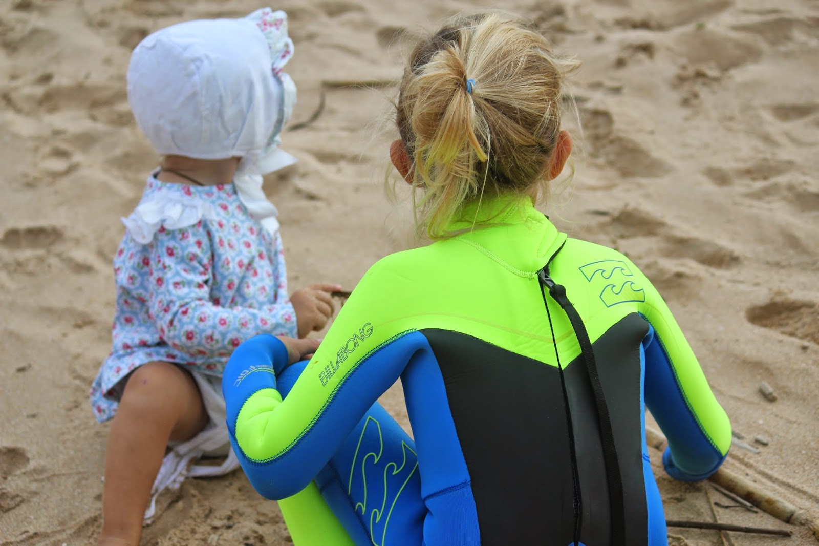 Uma surfista com um fato de surf "à séria", da Billabong que tem fatos giríssimos para crianças