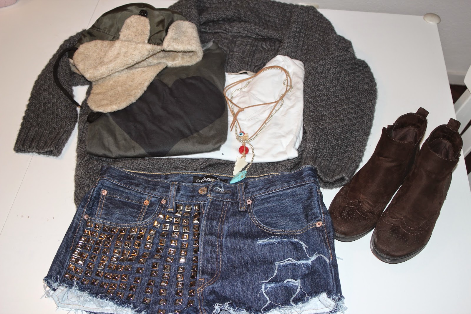 Os calções novos da Change acabadinhos de chegar, com o casaco, a camisola, os colares e os botins da Fantasylandstore. Na cabeça um gorro do H. que adoro de paixão
