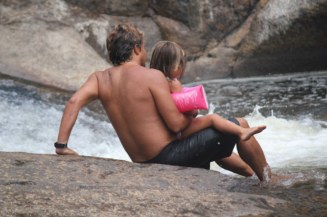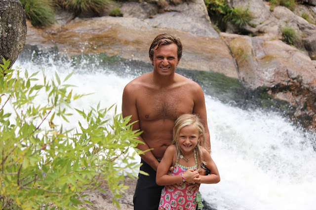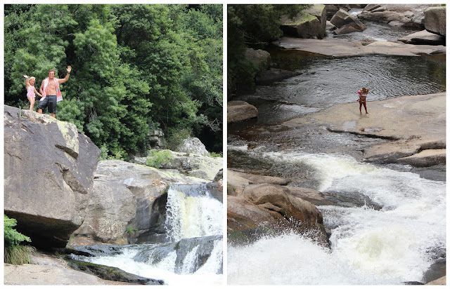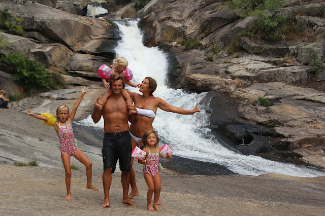 Depois dos dias no Gerês, encontrar este sítio na Galiza, foi uma aventura muito gira para um dia daqueles mais cinzento (dos muitos) que vamos apanhando aqui a Norte. As Cs deliraram andar pelo meio do mato, subir rochas,  passar pontes antigas, casas de pedra abandonadas para chegarem a um sítio lindo que todos tiveram de parar para admirar. A excursão de aventureiros não queria acreditar que sítios destes existem. Uma cascata no meio da selva, a fazer lembrar filmes de piratas em ilhas selvagens. A corrente da Cascata empurrava-nos e as corridas entre elas foram muitas para ver quem chegava primeiro. Até nós adultos deslizámos e gostámos da brincadeira. No final era só mesmo ter cuidado para nenhuma ir na corrente e ir parar aos rápidos que descem o rio. Um passeio muito giro que todos ficaram fãs e vamos repetir. Mochilas às costas, lancheira com piquenique, mini C às cavalitas e as outras duas cheias de vontade de explorar.