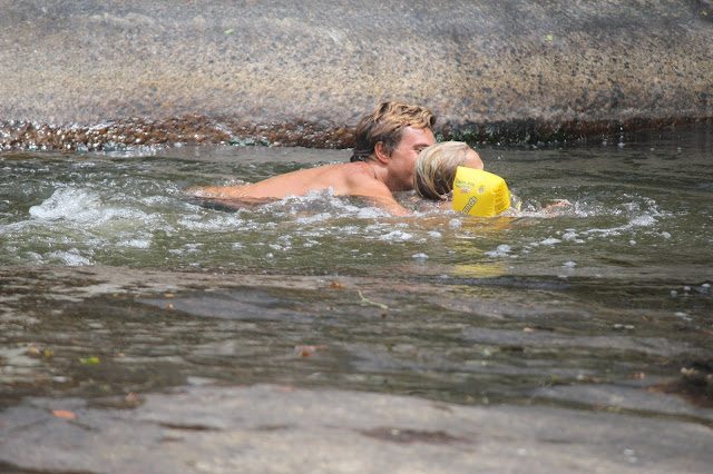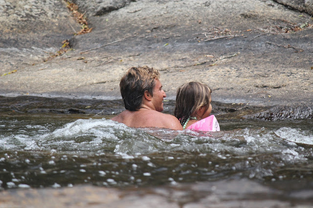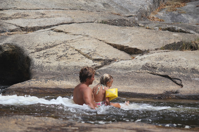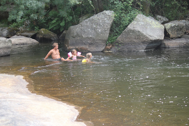 Depois dos dias no Gerês, encontrar este sítio na Galiza, foi uma aventura muito gira para um dia daqueles mais cinzento (dos muitos) que vamos apanhando aqui a Norte. As Cs deliraram andar pelo meio do mato, subir rochas, passar pontes antigas, casas de pedra abandonadas para chegarem a um sítio lindo que todos tiveram de parar para admirar. A excursão de aventureiros não queria acreditar que sítios destes existem. Uma cascata no meio da selva, a fazer lembrar filmes de piratas em ilhas selvagens. A corrente da Cascata empurrava-nos e as corridas entre elas foram muitas para ver quem chegava primeiro. Até nós adultos deslizámos e gostámos da brincadeira. No final era só mesmo ter cuidado para nenhuma ir na corrente e ir parar aos rápidos que descem o rio. Um passeio muito giro que todos ficaram fãs e vamos repetir. Mochilas às costas, lancheira com piquenique, mini C às cavalitas e as outras duas cheias de vontade de explorar.