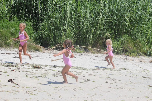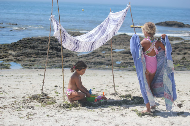 Acabados de chegar e já com saudades das férias na Galiza, dos dias diferentes, cheios de programas originais onde até as praias têm características que só lá encontramos e adoramos. Pertinho de Vigo, areia fina e branca, muitas canas para construir tendas e sombras cheias de pinta, peixinhos que andam nas mil rochas que as praias têm e fazem com que todas as crianças tenham um camaroeiro colorido e passem os dias à pesca (para o ano já está na lista de coisas a levar para as Cs), o nevoeiro que todas as manhãs aparece, as tarde compridas que só terminam bem tarde, já perto das dez da noite quando o sol se põe e mais uma lista enorme que se revelasse tirava o mistério que estas praias têm e só quem lá vai entende. Coisas boas, coisas que nos fazem querer voltar todos os anos, paisagens lindas que nos fazem esquecer a água fria, visitas sempre deliciosas, como foram os golfinhos que passearam ao largo e fazem as Cs sonhar com eles desde esse dia. Mil histórias e brincadeiras que ficam de ano para ano, cada vez mais divertidas e cúmplices entre as três.