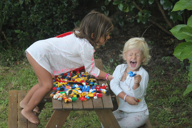 A cara da C. pequenina diz tudo. Venceu a loira mais pequenina, porque as duas mais velhas têm a verdadeira noção de quem é mais fraco e nunca lhe batem até fazer doer à séria. Adoro esta protecção de manas mais velhas e adoro a cara da Conchinha que depois enchi de beijinhos e miminhos, porque ela merecia isso e muito mais, afinal ela só estava a defender a sua casa de lego que precisava de alguém que tomasse conta dela.