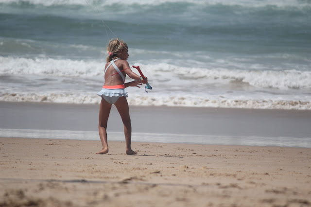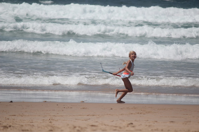 Não há surf, há muitas outras coisas e nesse dia o papagaio que o pai deu à Carlota para ela achar que consegue fazer um bocadinho de Kite surf (esta miúda é fã de tudo o que o pai faz), foi a animação total. Estava mesmo feliz.