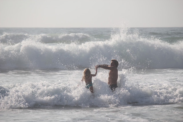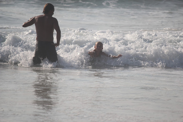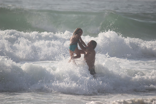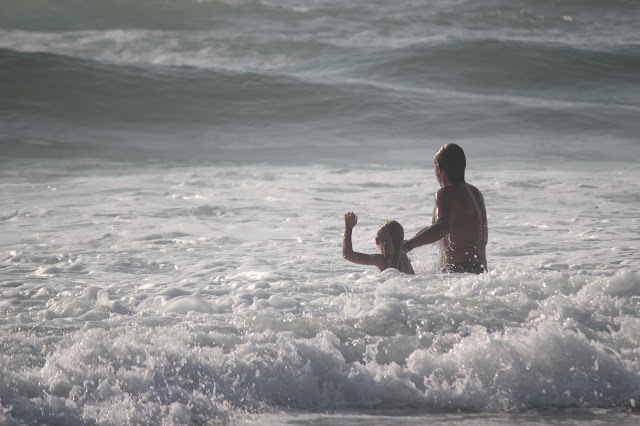 Primeira paragem, praia dos Aivados, uma praia enorme onde espaço para estender a toalha não falta e onde os passeios à beira mar são do melhor que há. Nesse dia o mar não estava do melhor para duas principiantes (a espuma das ondas era tão forte e grande que olhei para o mar e achei que se entrasse saía de lá tipo a roupa na máquina de lavar). Nesse dia só o pai entrou e mesmo ele não adorou.