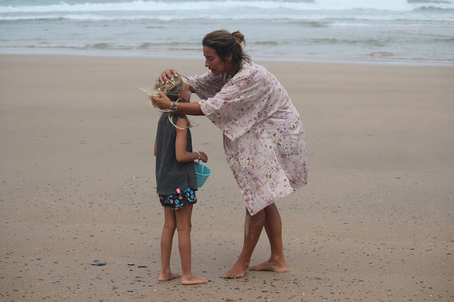 Neste dia a indecisão de qual a praia escolher começou, tantas são as hipóteses boas que há nesta zona. Teria sido Arrifana se não fossemos ter com uma amiga que estava em Monte Clérigo, mas ainda bem que fomos a esta, uma das que nunca vou e adorei. Esta semana estamos a apanhar a maré vazia de manhã o que tem porporcionado grandes passeios, muitas brincadeiras na praia e não só surf, porque segundo o nosso expert, para nós é muito melhor quando a maré enche e as ondas ficam mais fáceis. Estas praias são tão grandes que os passeios à beira mar têm sido muitos e longos (pena e burrice a minha não ter trazido os ténis e um top para correr). Nesta manhã aproveitámos e tirámos algumas fotografias, tipo sessão mãe e filha que ficaram o máximo, fizemos surf (com direito a registo) e à tarde ainda fomos beber uma cerveja num sítio com uma vista deslumbrante noutra praia que faz as delícias dos mais pequeninos por ter mar e rio para brincarem, nadarem e estarem entretidos durante muitas horas do dia, Tasca do Gabriel (alto spot) na praia da Amoreira com uma vista deslumbrante. Desta vez não viemos fazer praia aqui, mas fica a dica para quem procura praias mais babyfriendly para ir com os mais pequeninos.