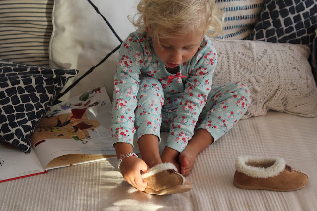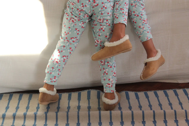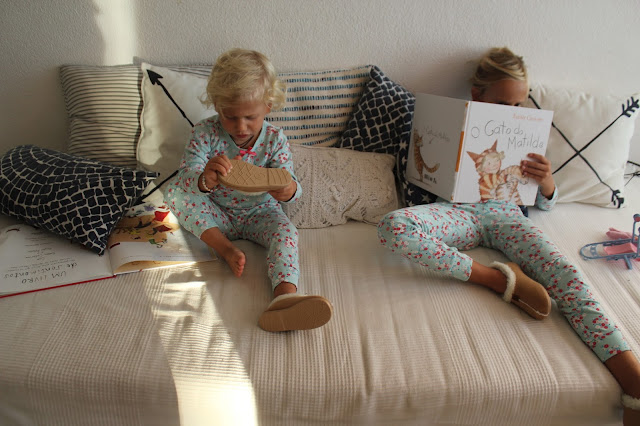 Chegaram os dias que apetece a mantinha para ver televisão e chegaram os dias da minha luta para elas não andarem descalças em casa. Pijamas giros mais quentes já tinha comprado, pantufas quentinhas e giras, agora também.