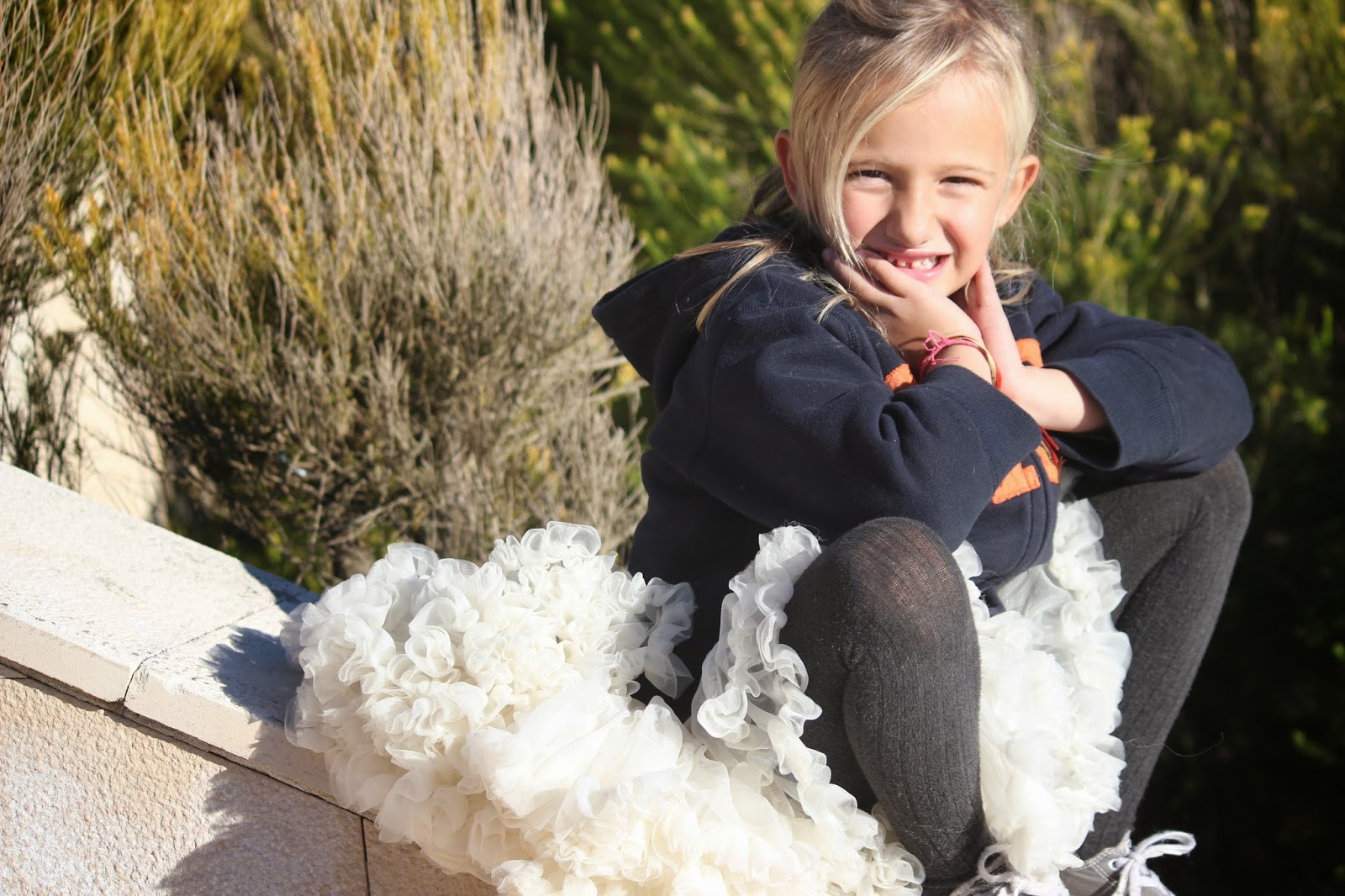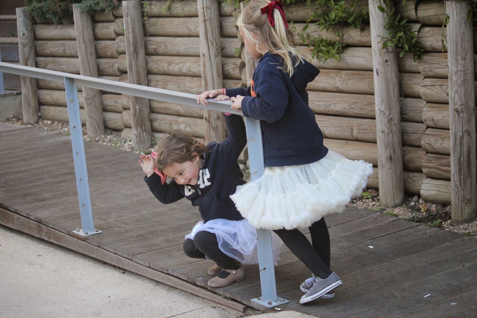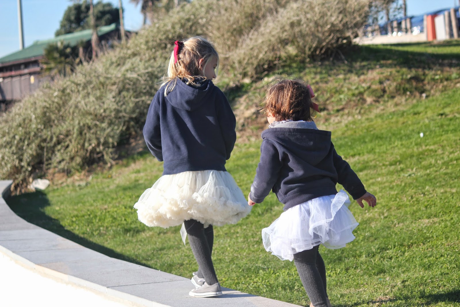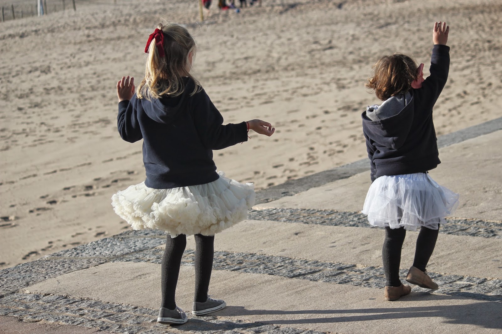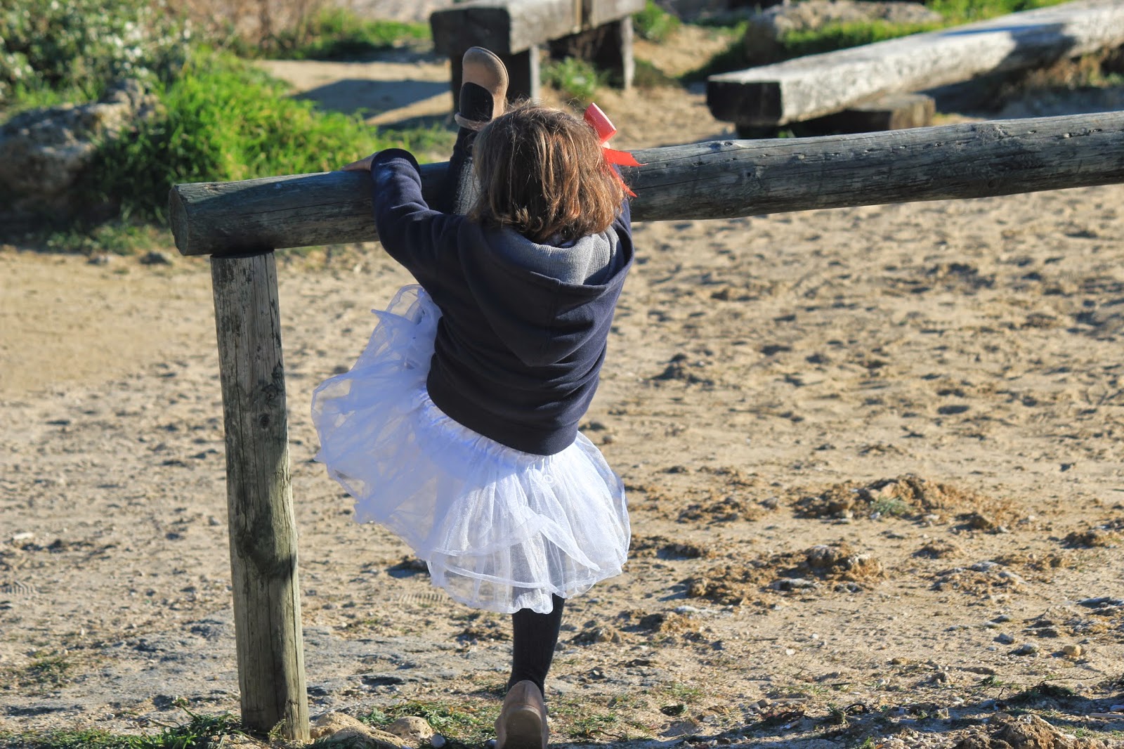 Nota: A Conchinha tem uma saia tutu igual à da Carlota, mas em cinzento (aliás as três têm uma, cada uma de sua cor), mas nesse dia de manhã ao pequeno almoço entornou o leite e sujou a dela. Era impensável não deixar que levasse uma saia de bailarina também nesse dia para passear e esta foi a solução.